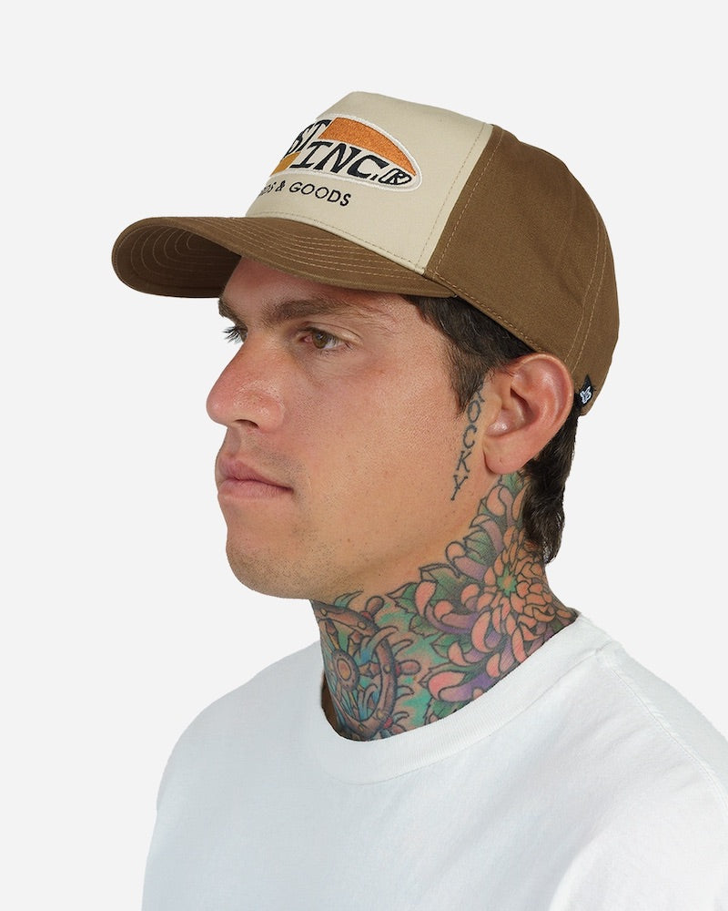 Contrast brown bill and back panels